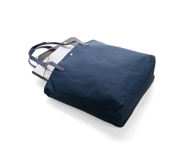 Sacola confeccionada em couro sintético à base de PVC com par de alças de costura externa e botões magnéticos metálicos para fechamento. Possui revestimento interno em poliéster e bolso compacto com fechamento em zíper.