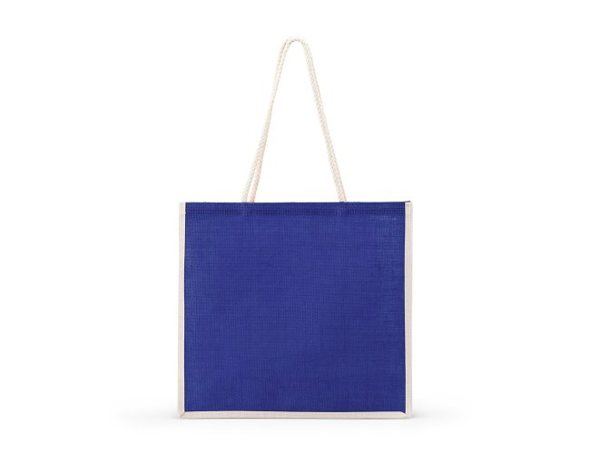 Sacola ecológica confeccionada em juta com alças costuradas na parte interna.